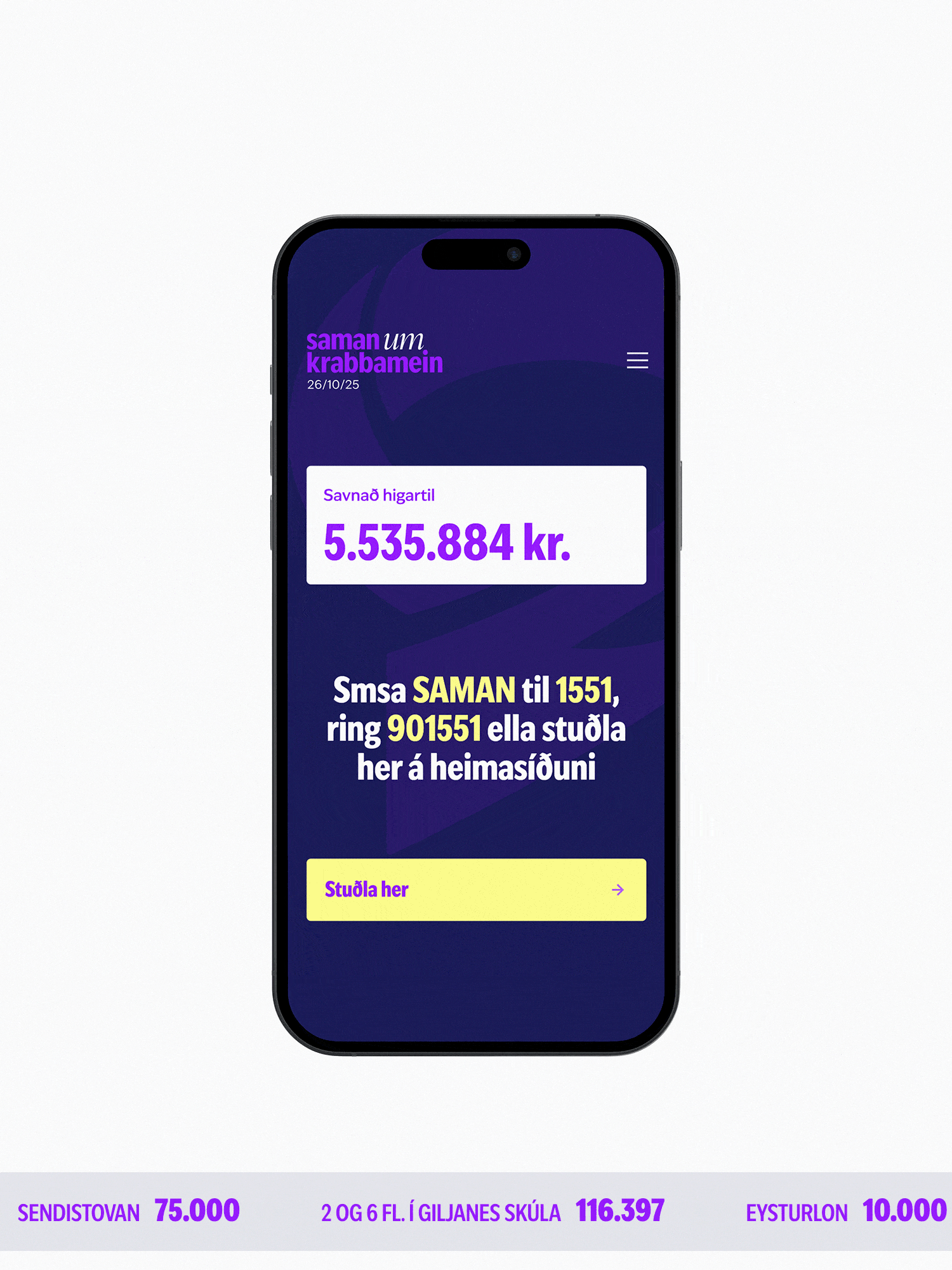 Krabbameinsfelagið hevur fingið eina dagføring. Ella eitt facelift. Einfaldari og flatari búmerki, greiðari typografi og klárari litir. Nýtt navn og grafikk til landsinnsavningina, nýggja heimasíðu og nýtt næstan alt. Evolusjón er aloftast betri enn revolusjón. Serliga innan branddesign, tí eitt branddesign eigur altíð at fylgja við tíðini. Og nú stendur Krabbameinsfelagið nýtt og feskt. Men enn til at kenna aftur.